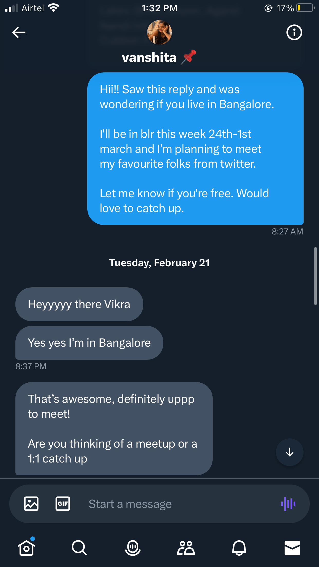 Honestly, I didn’t even know she lives in Bengaluru until she replied to some random tweet which happened to pop up on my feed