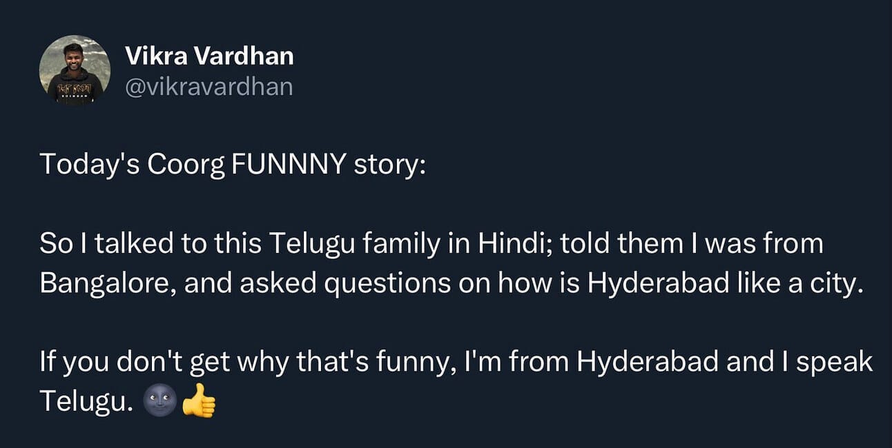 So I just visited a café nearby to kill some time. (I am in Mysore, btw) I had a sandwich + a short conversation with the café owner about the place and everything around.